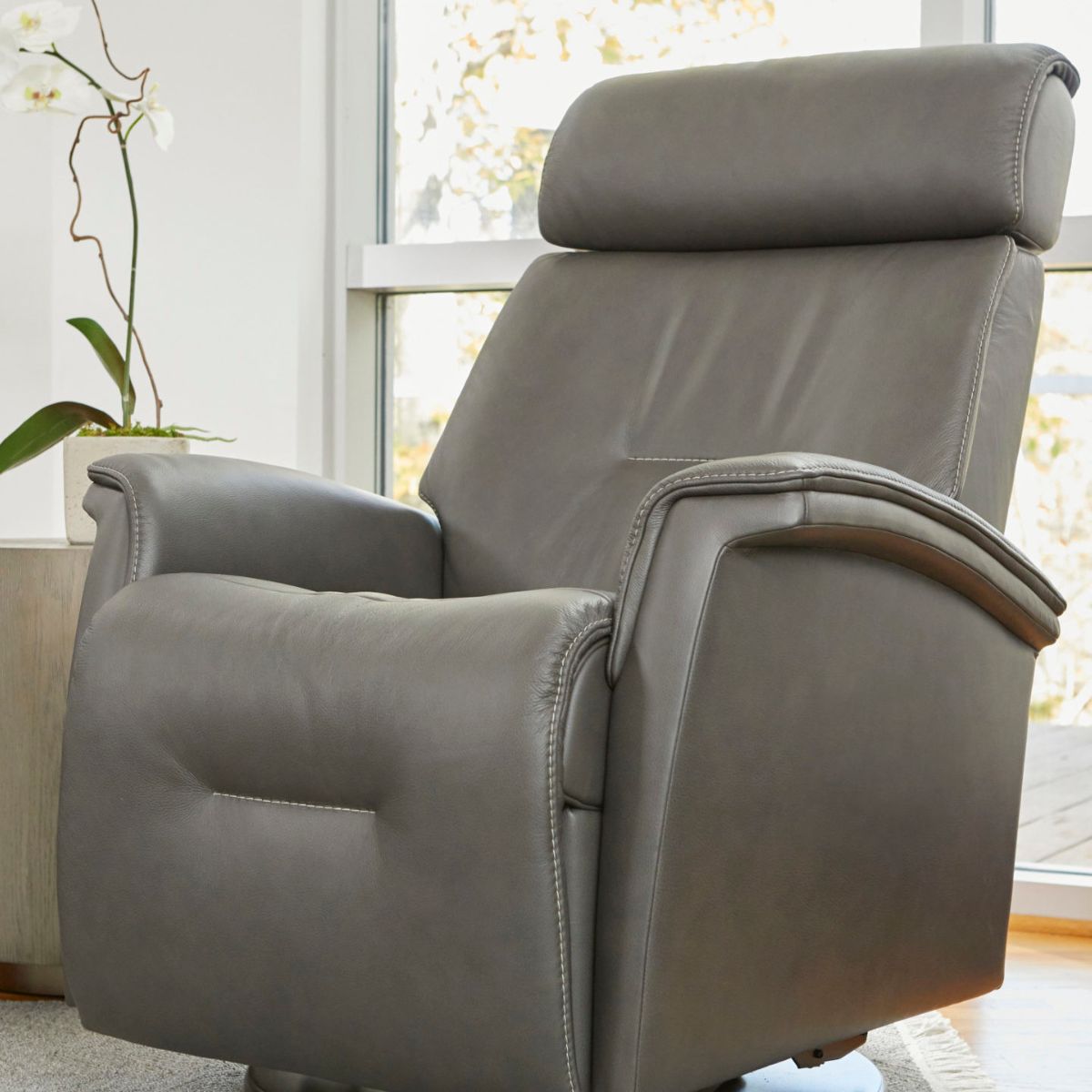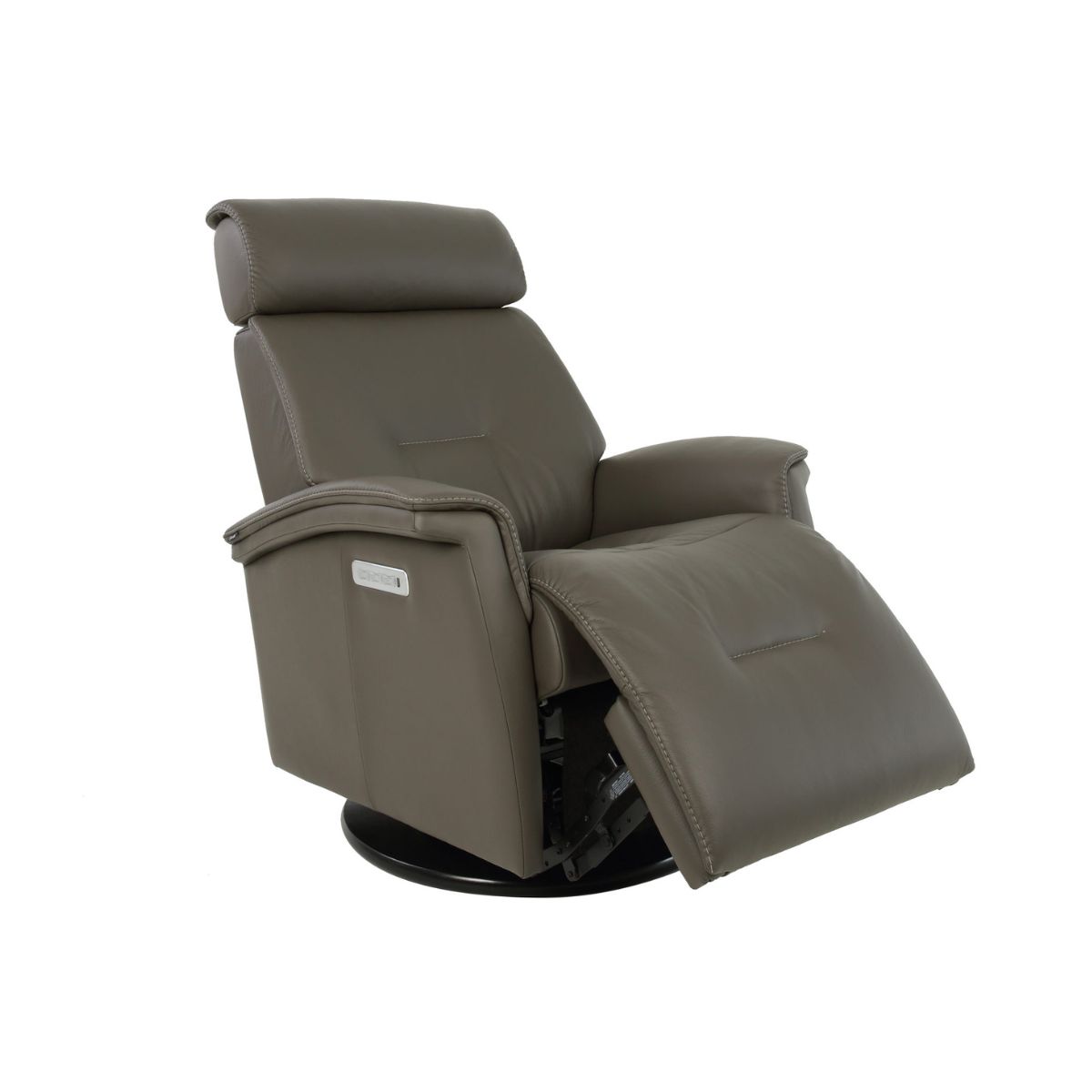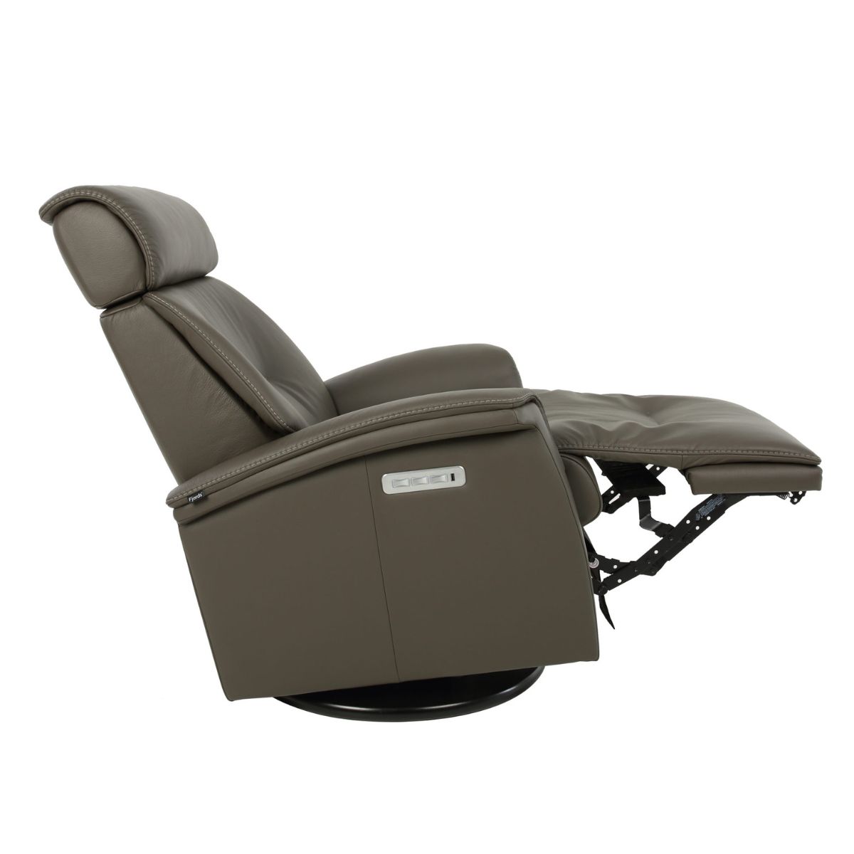 The Fjords Rome swing relaxer, featuring three motor system, features controls for reclining, power lumbar support and power head / neck support. These details makes the seating experience ergonomic and gives your lower back and neck correct support. Available in all our leathers and select fabrics, the Rome is available in two sizes, small and large. Black base is standard on Rome.