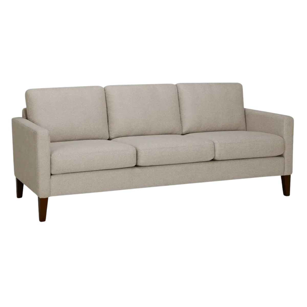 The Soren Track Arm upholstery collection offers classic styling and proportions to fit in any space. Pairing thin track arms with high two-sided tapered wooden legs in a cognac finish, Soren creates a visually light silhouette in any room. This approachable design sit slightly more proper, but still offers plenty of comfort.
