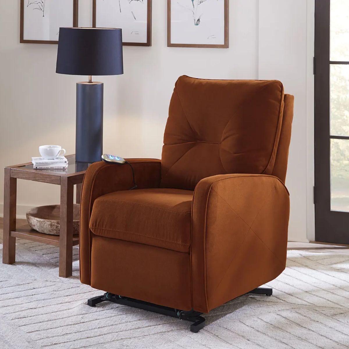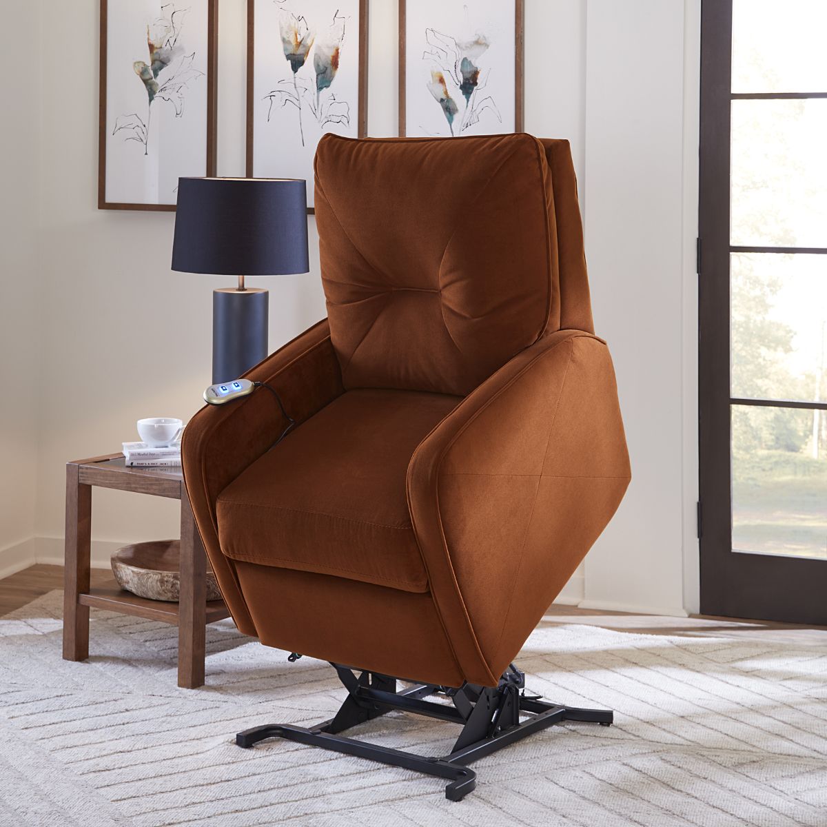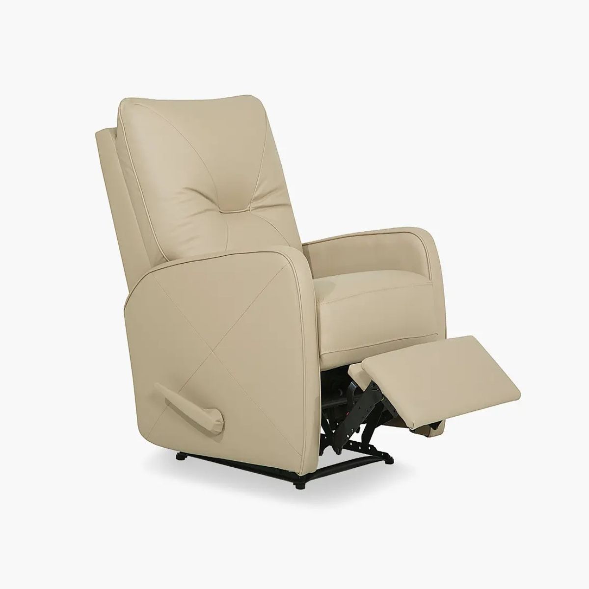 The Theo recliner is all about a smaller scale without sacrificing comfort. The sleek narrow arms add a modern touch, accentuated with a piping trim. The unique back treatment is inspired by a toss pillow and the diagonal stitching and piped back details create a singular design statement. Take a seat on the high-resiliency foam, recline back and find perfect relaxation as you sink into luxurious comfort. The padded armrests have a subtle rounded shape. An extended footrest offers additional support when lounging or watching television in a fully reclined position. The Theo is available in either power or manual recline and a variety of unique comfort functions for maximized convenience including a rocking function, swivel, swivel glider, wall hugger and lift, which allows gentle ease from a sitting to a standing position, while reducing strain on joints. An alluring design, together with the modest size of the Theo collection make this recliner the perfect complement to your intimate space.