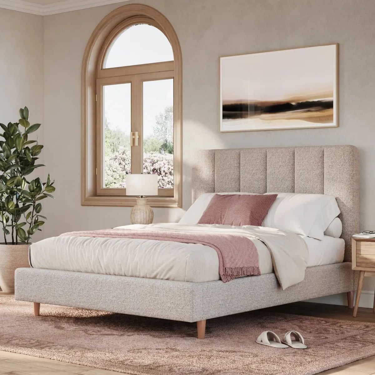 Start every morning in style thanks to the sleek design of Verttia. A striking blend of contemporary and traditional elements, this upholstered bed is made to fit any aesthetic. Clean, vertical lines offer a modern look while plush channels add comfort and enhance its texture. Customizable cover and leg options allow for ultimate personalization.